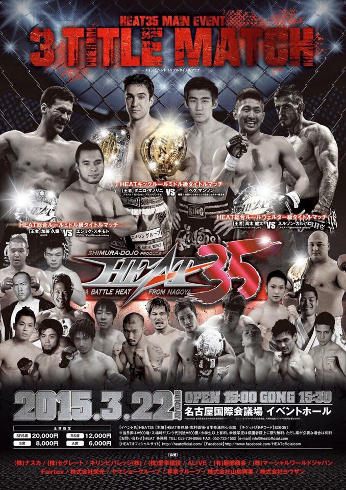 3/22 HEAT 35 民放テレビ愛知 放映決定! 3/22(日) HEAT 35 名古屋大会 民放テレビ愛知での放映決定! 3大タイトルマッチに注目! ALIVEからは 加藤久輝が、ミドル級タイトル防衛戦へ! 村元友太郎が、プロデビュー戦を! 応援チケット募集中です!